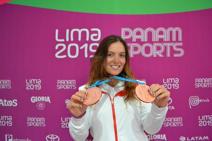 En Lima 2019, la primera medalla se la llevó en la prueba de kayak a una plaza (K1) con tiempo de 110.20 segundos y sumó su segunda en la final del extreme slalom K1.